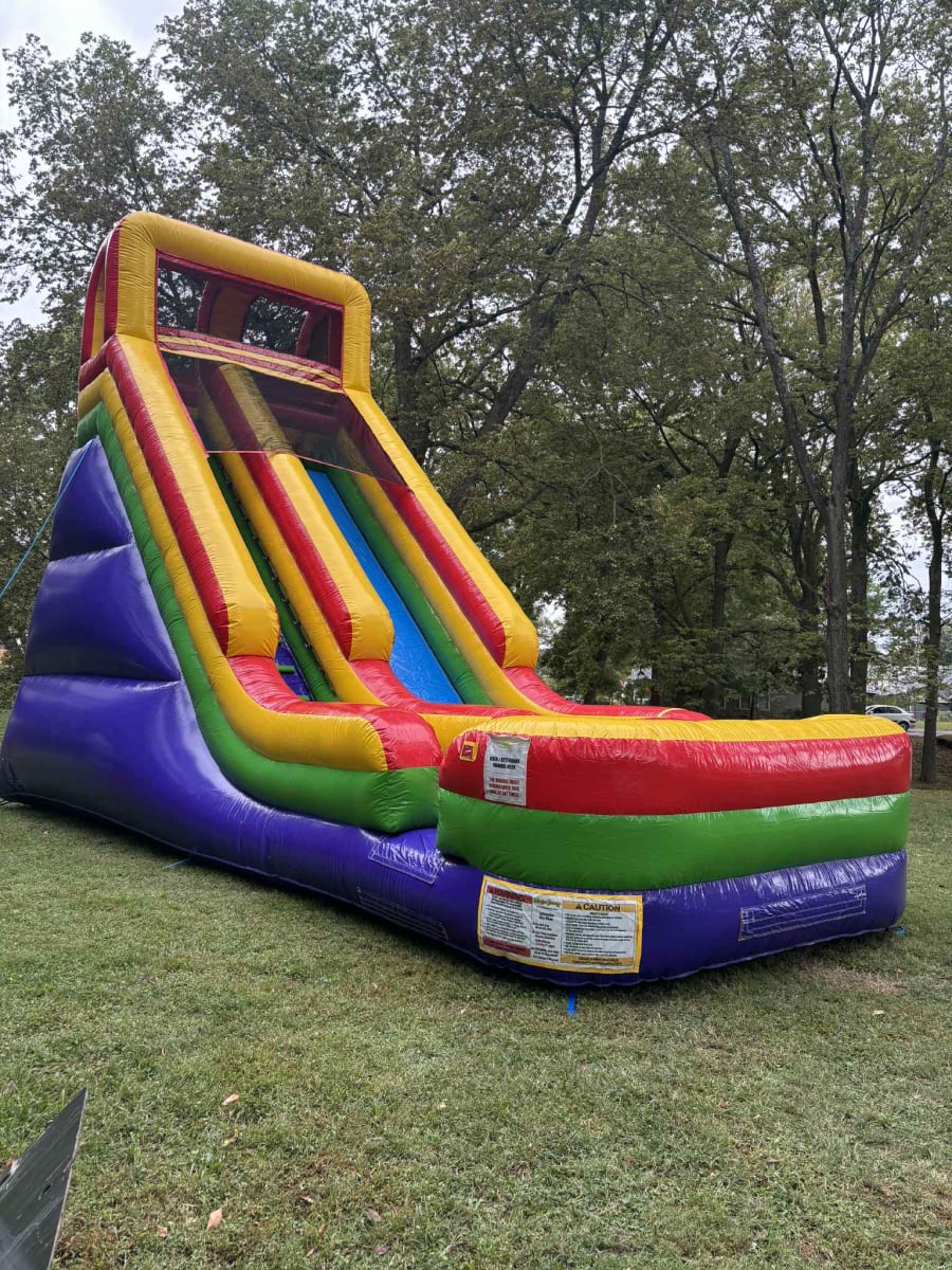 Happy Hill Slide in northwest Missouri is a 24 ft one-lane dry slide built for big thrills and bright photos. This colorful, eye-catching slide turns any backyard, school event, or community fair into a showstopper. We deliver, set up, and tear down for a truly hassle-free party. Book early to secure your date and make your event unforgettable.