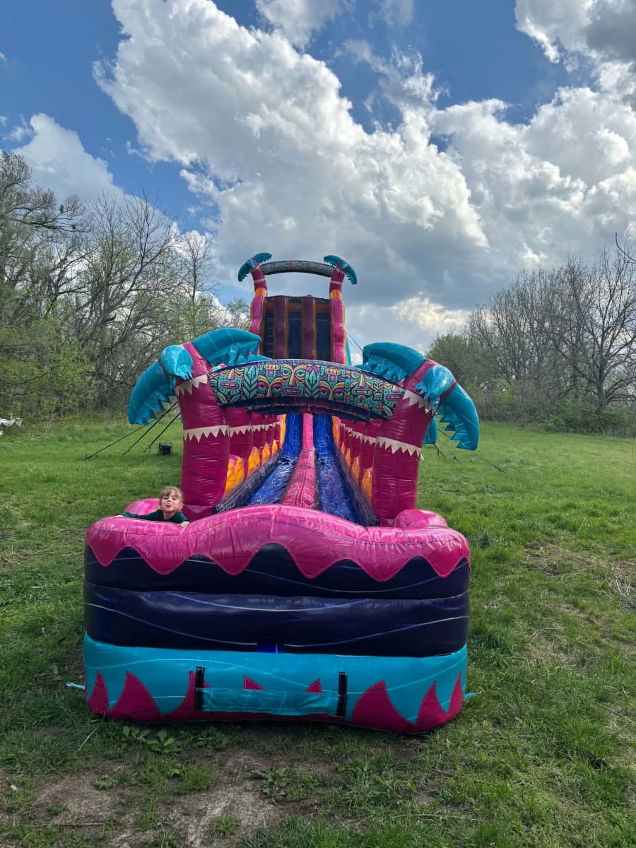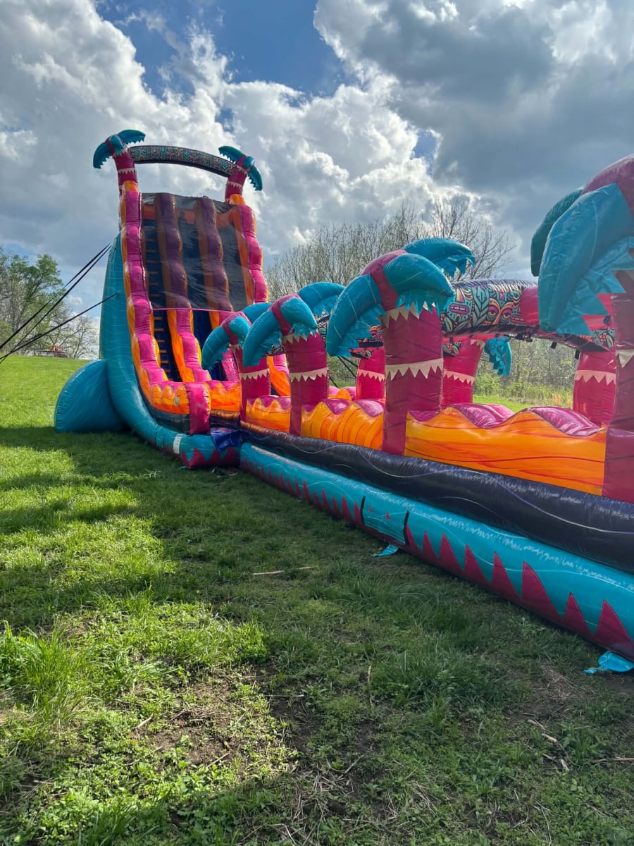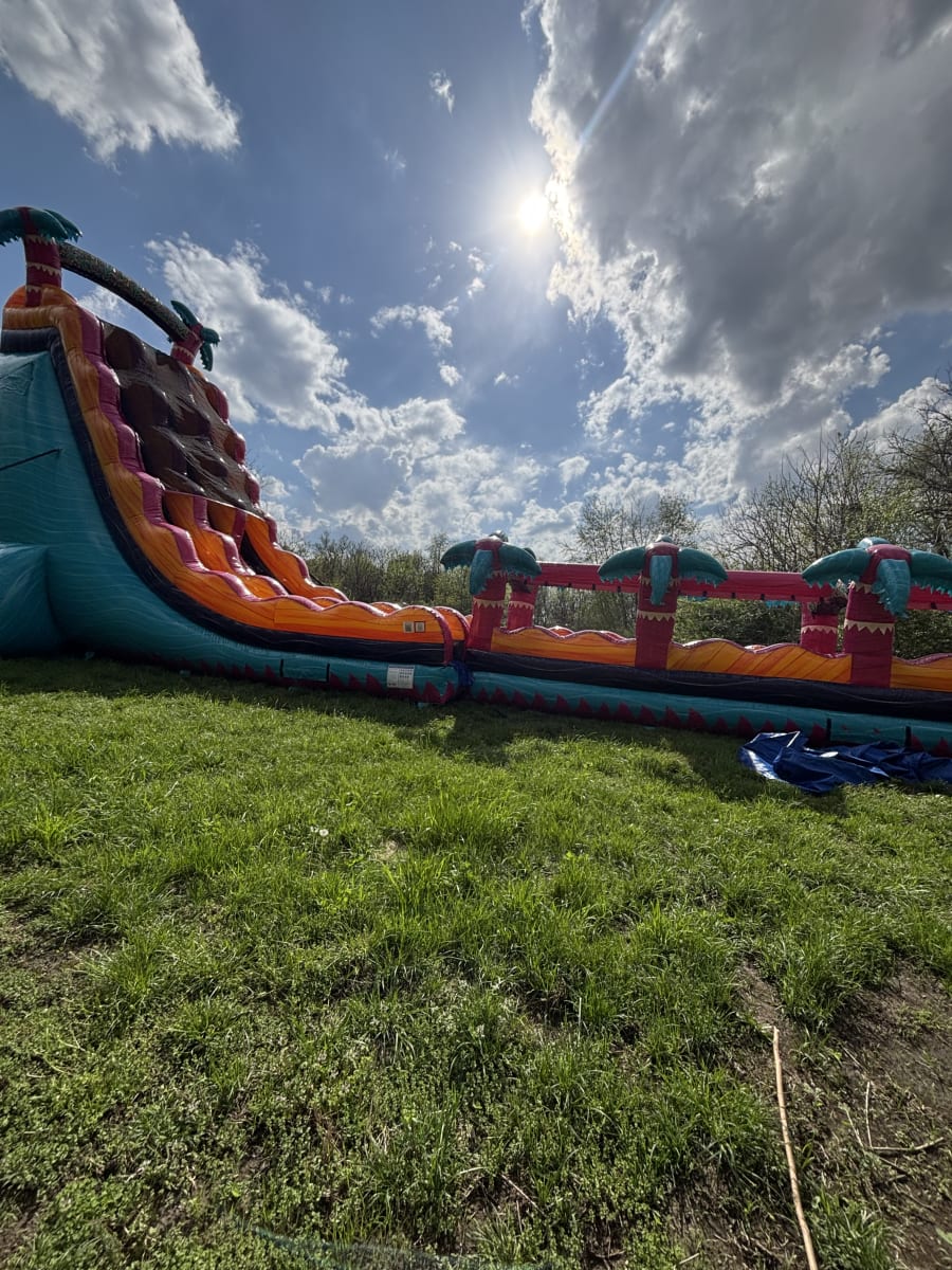 Perfect for schools, churches, community events, after proms, backyard parties, corporate gatherings, and large summer celebrations, the Tropical Thunder 30-Foot Splash handles high volumes of riders with ease. Teens and adults especially love the height, speed, and competitive racing lanes, while younger riders enjoy the splash pool landing and bright tropical look. Our team delivers, sets up, and tears down the unit for you, ensuring a smooth and professional experience every time.