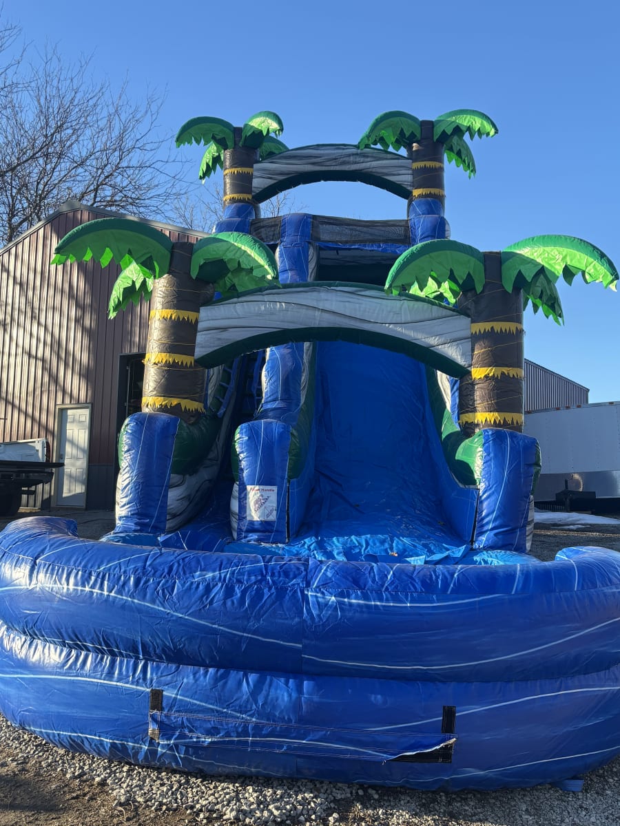 Bring the excitement of the ocean right to your event with our Blue Crush Wave 18-Foot Water Slide! This bold tropical-themed slide delivers fast, refreshing fun and instantly becomes the star attraction of any summer party, school event, church gathering, or backyard celebration.