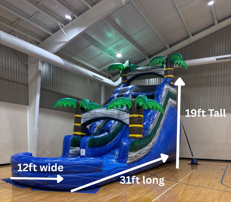 Bring the excitement of the ocean right to your event with our Blue Crush Wave 19-Foot Water Slide! This bold tropical-themed slide delivers fast, refreshing fun and instantly becomes the star attraction of any summer party, school event, church gathering, or backyard celebration.