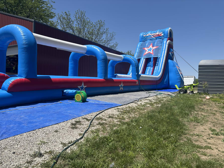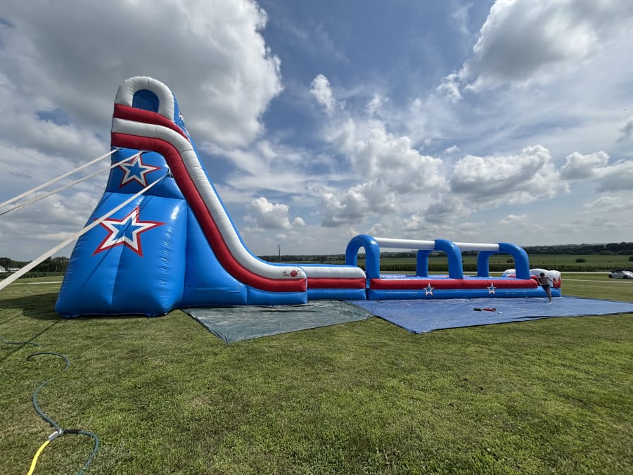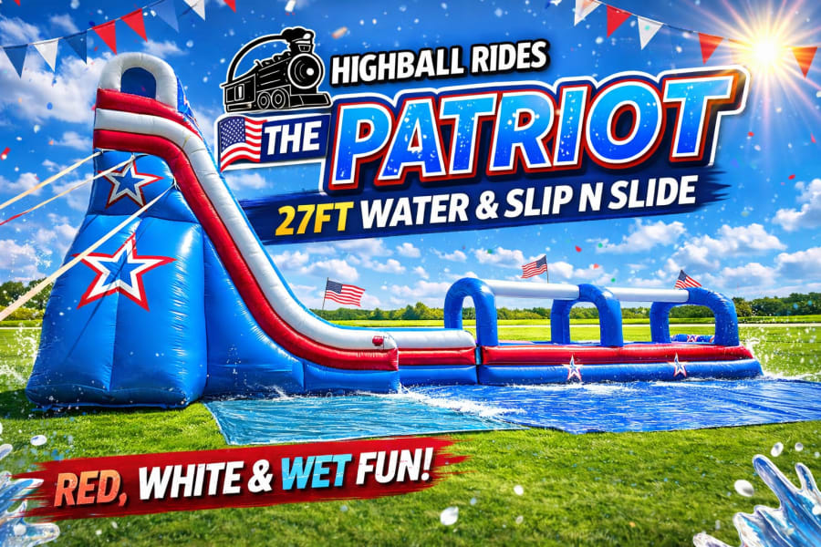 Make a huge splash at your next event with The Patriot, our towering 27-foot water slide and one of the most exciting attractions in our entire lineup. With bold red, white, and blue colors and a long, fast sliding lane, this massive unit delivers high-speed summer fun for kids, teens, and adults.