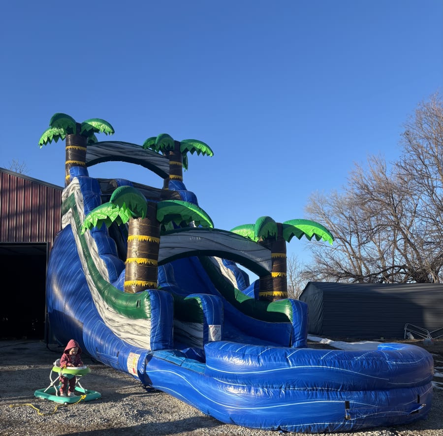 Bring the excitement of the ocean right to your event with our Blue Crush Wave 18-Foot Water Slide! This bold tropical-themed slide delivers fast, refreshing fun and instantly becomes the star attraction of any summer party, school event, church gathering, or backyard celebration.